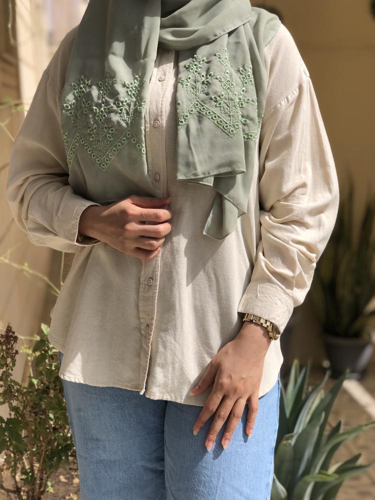 طرحة بوال لون تفاحي بتطريز من الطرفين