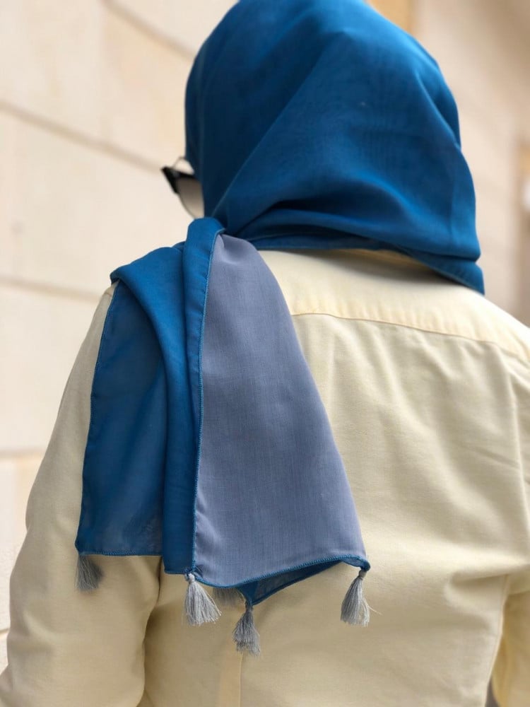 طرحة ليزر لون تركواز بتطريز على طول الطرحة