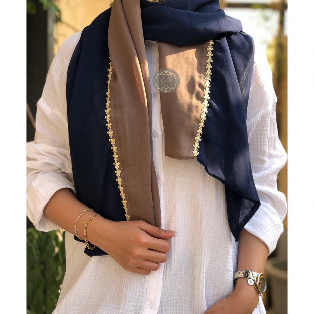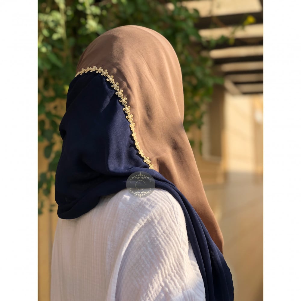 طرحة بوال لون بيج مع اورنج بشريط ذهبي انيق