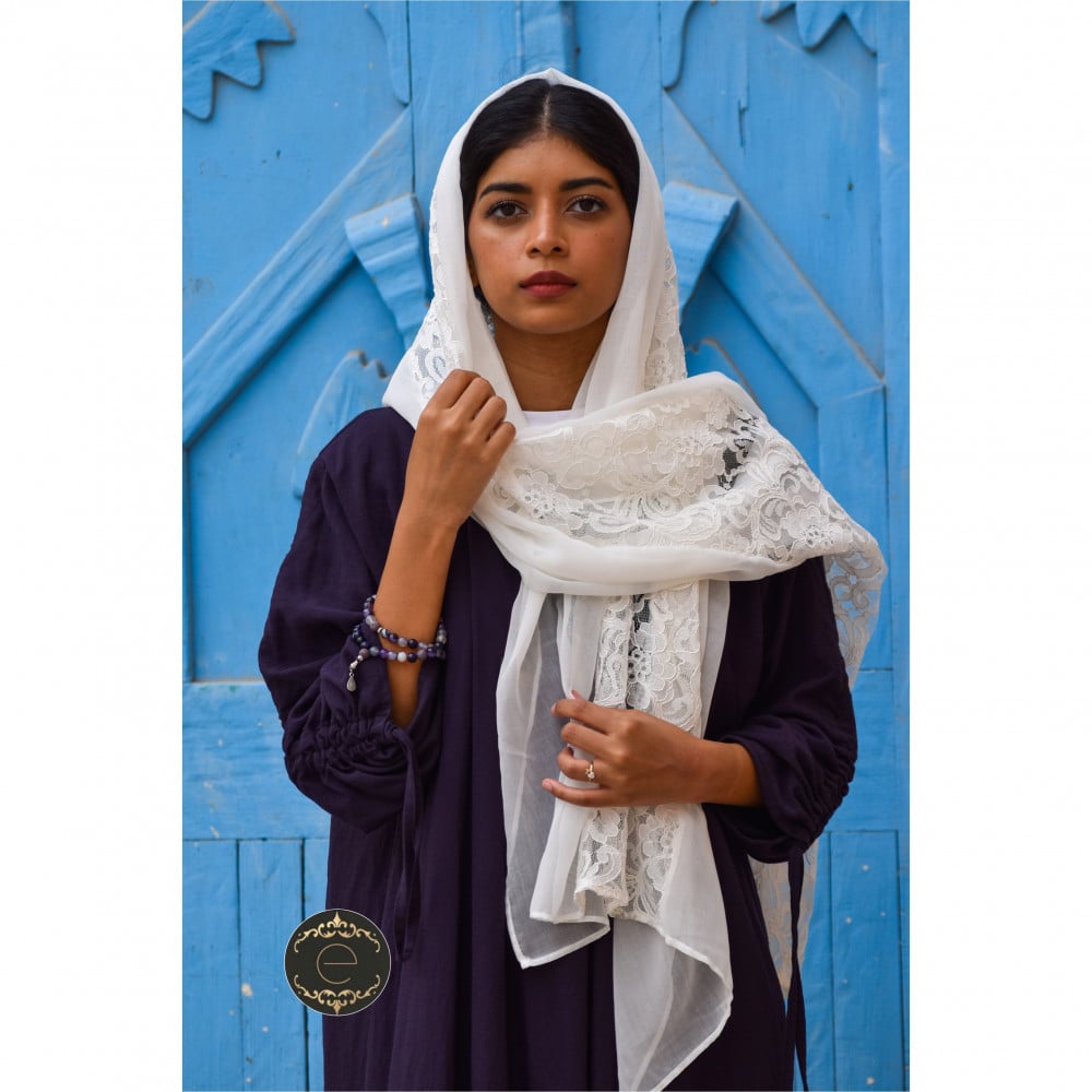 طرحة لنن بتطريز بطول الطرحة لون كحلي