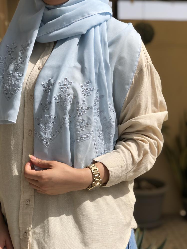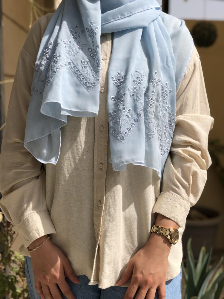 طرحة بوال لون سماوي بتطريز من الطرفين