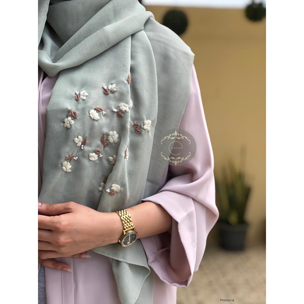 طرحة ليزر لون كاكي بتطريز بطول الطرحة