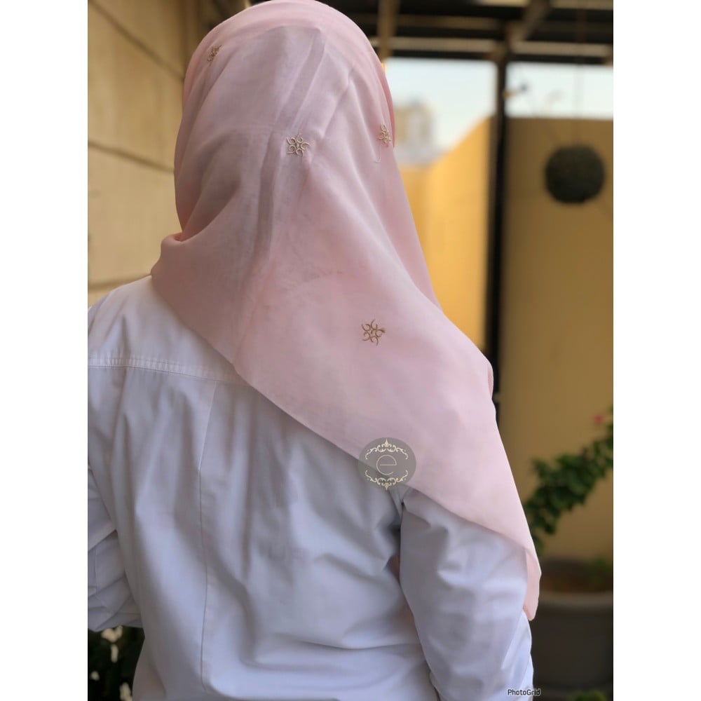 طرحة بوال لون وردي بتطريز ثلجي