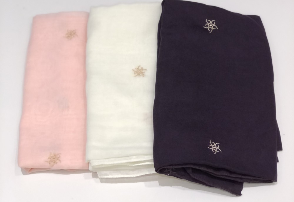 طرحة لنن لون رمادي بتطريز من 3 جهات