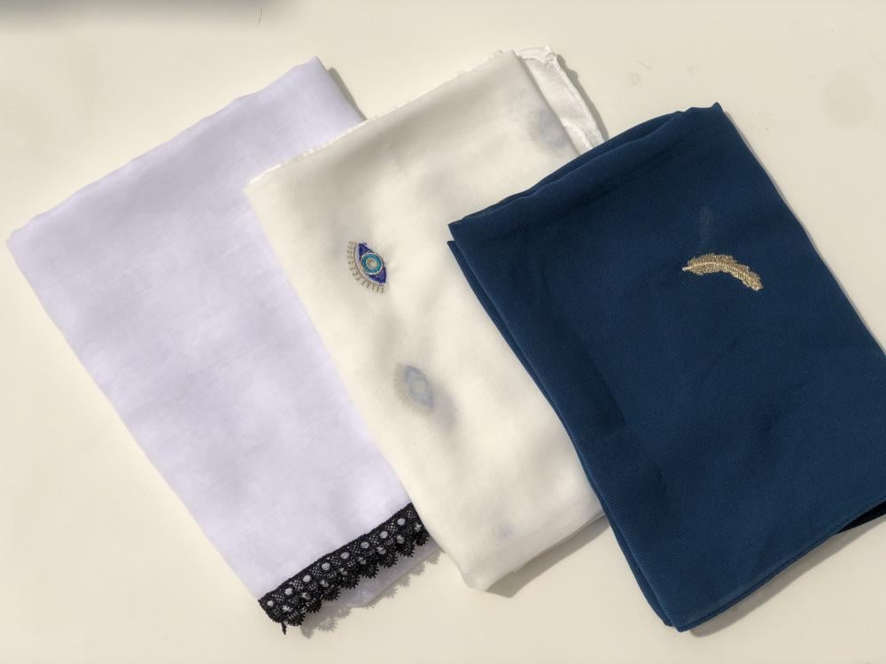 طرحة شيفون لون اسود مع دانتيل ابيض من الطرفين