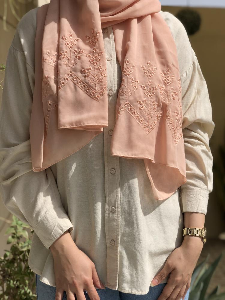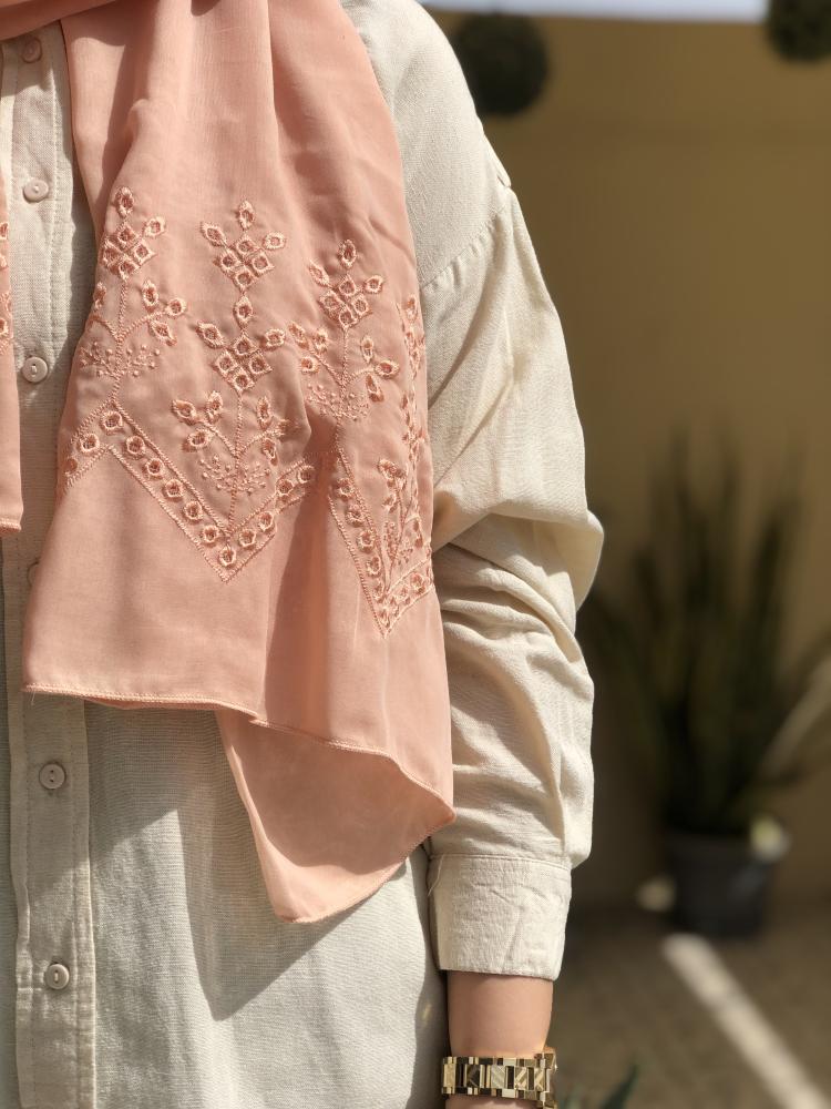 طرحة بوال لون خربزي بتطريز من الطرفين