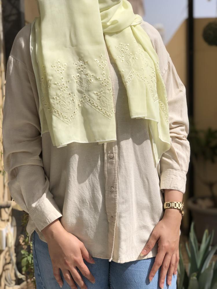 طرحة بوال لون ليموني بتطريز من الطرفين