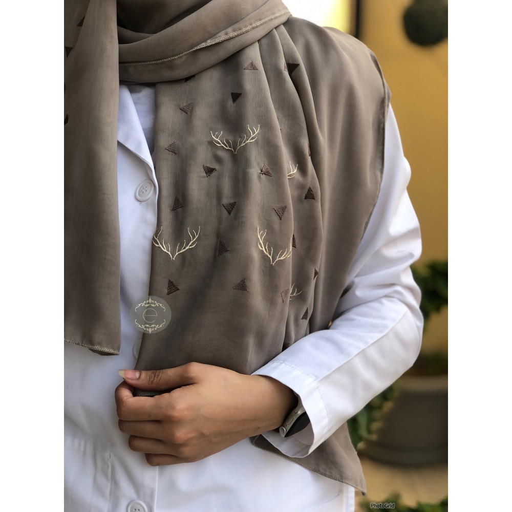 طرحة بوال لون كاكي بتطريز على شكل قرن الغزال