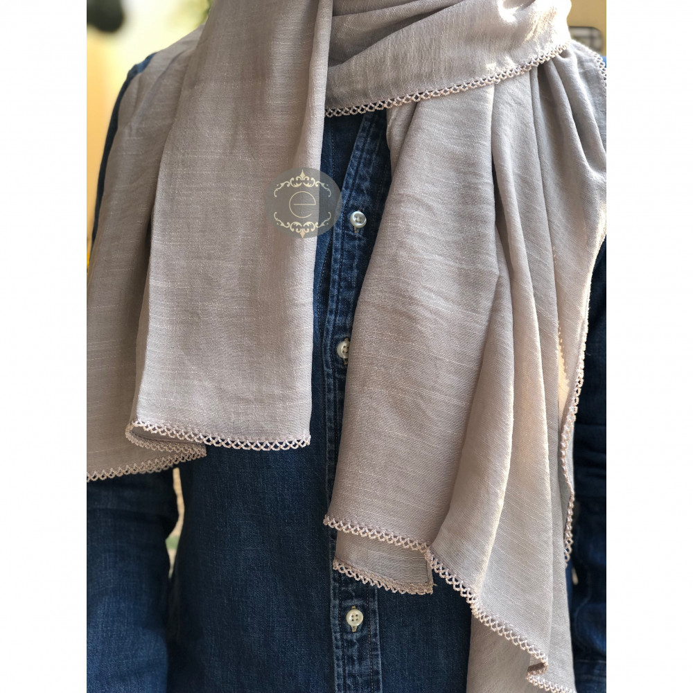 طرحة ليزر لون بيج بتطريز على طول الطرحة