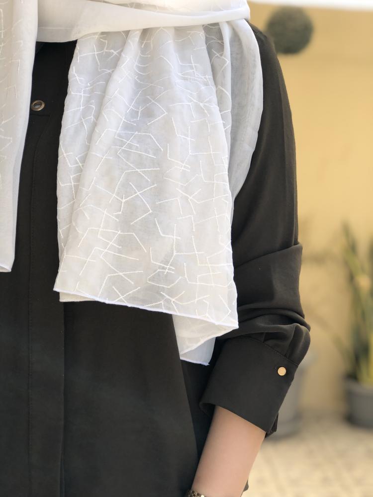 طرحة لنن لون ابيض بتطريز ناعم بطول الطرحة