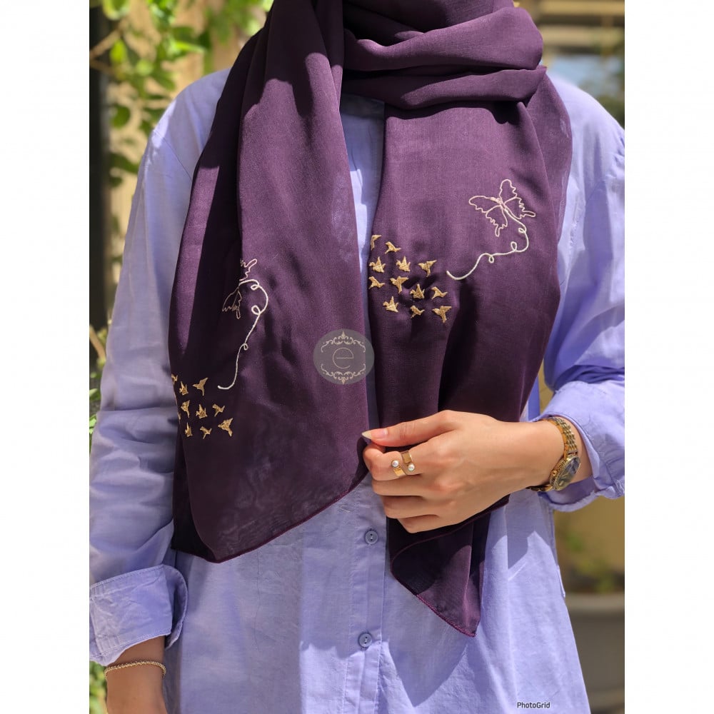 طرحة بوال لون بنفسجي بتطريز على شكل فراشة