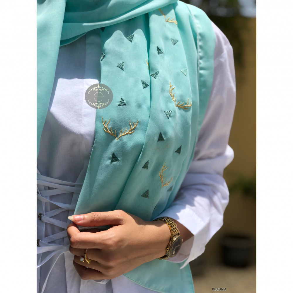 طرحة بوال لون تيفاني بتطريز على شكل قرن الغزال