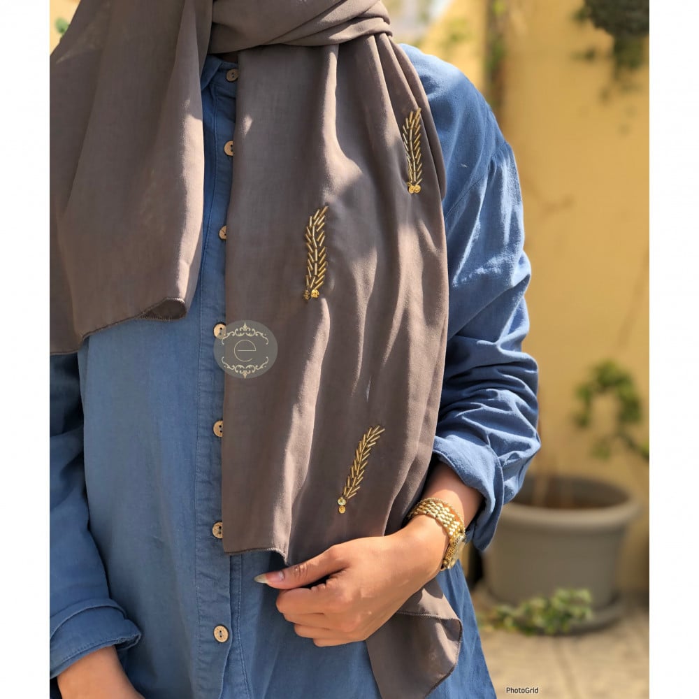 طرحة بوال لون كاكي بتطريز من الطرفين
