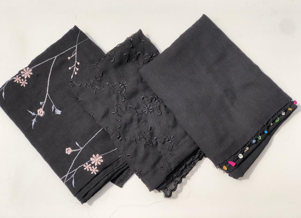 مجموعة 3 طرح (كحلي مع عودي / بيج قرن الغزال/كاكي ليزر قلوب)