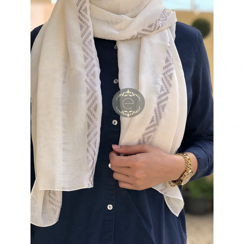 طرحة ليزر لون موف بتطريز على طول الطرحة