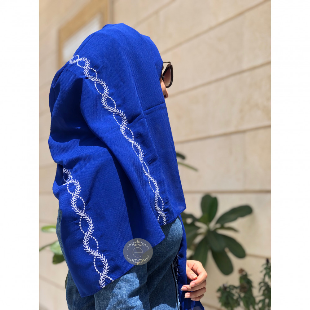 طرحة ليزر لون نيلي بتطريز على طول الطرحة