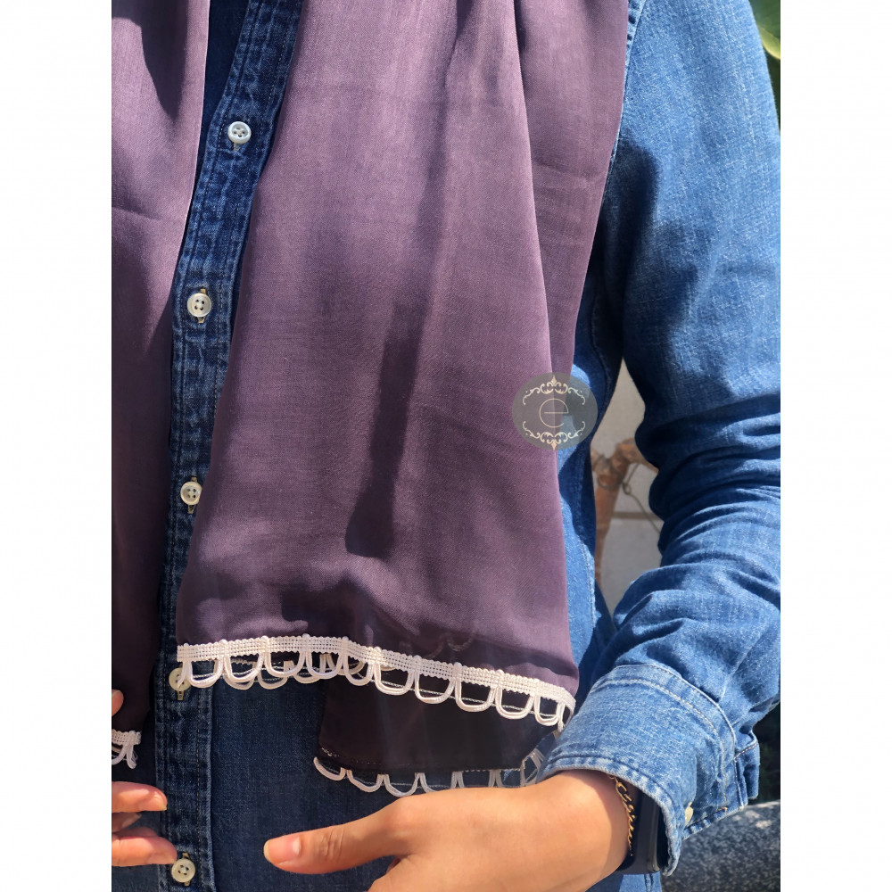 طرحة لنن لون بنفسجي بتطريز انيق بطول الطرحة