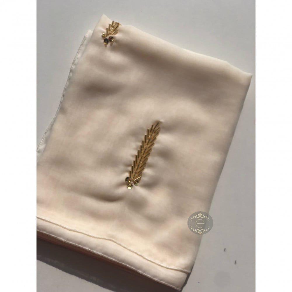 طرحة بوال لون سكري بتطريز على شكل قرن الغزال