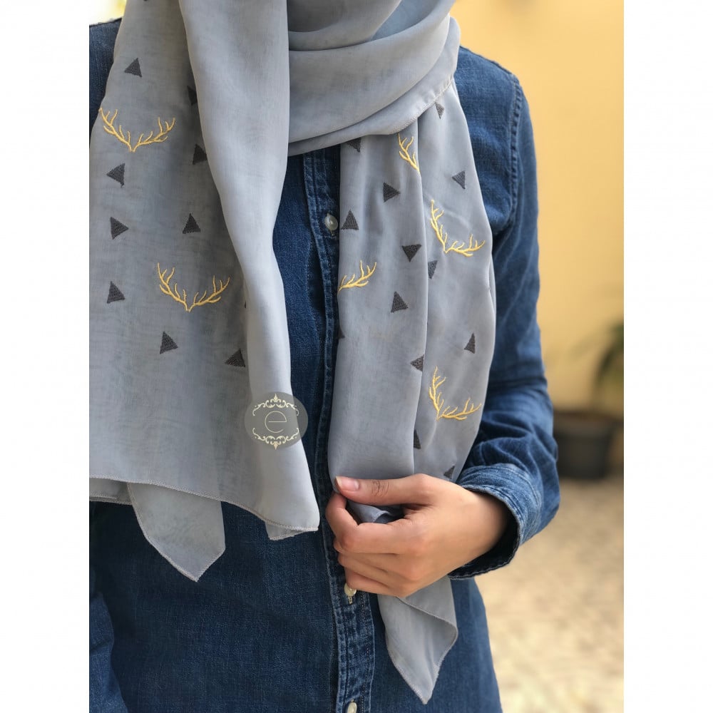 طرحه بوال بتطريز على شكل قرن الغزال لون رمادي