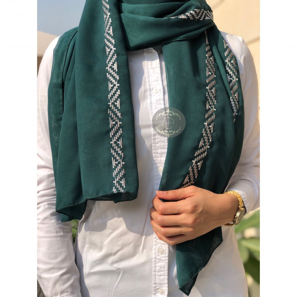 طرحه بوال بتطريز على شكل قرن الغزال لون تيفاني
