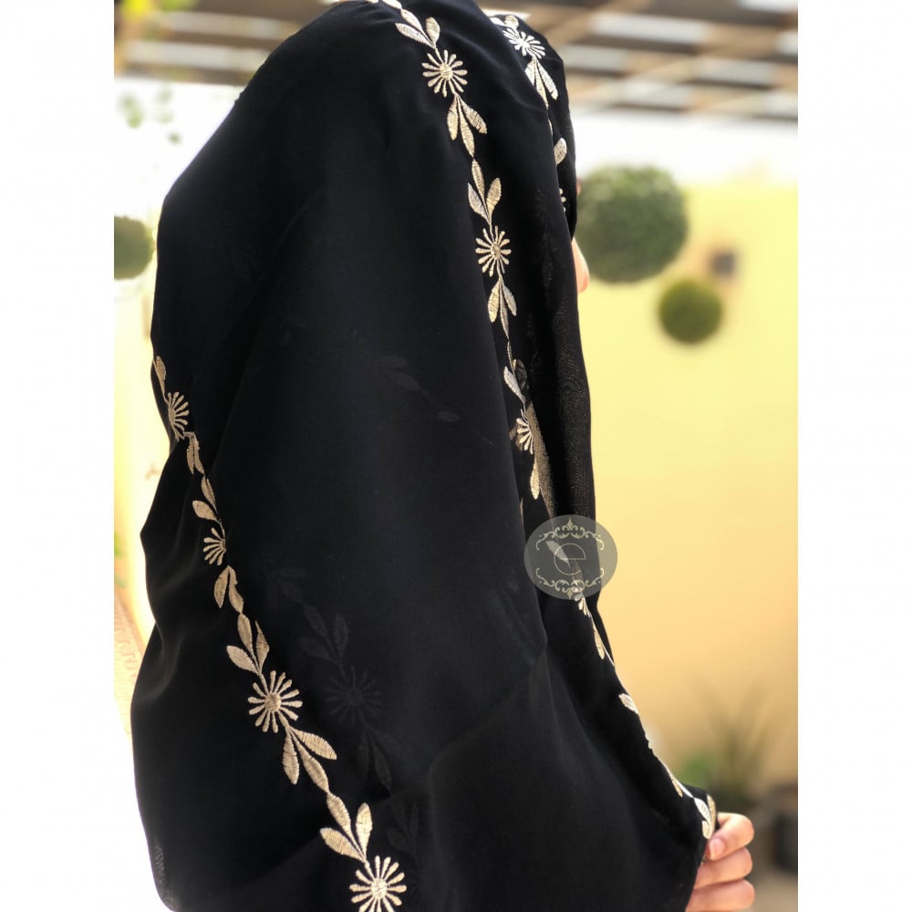 طرحة ليزر لون اسود بتطريز بطول الطرحة