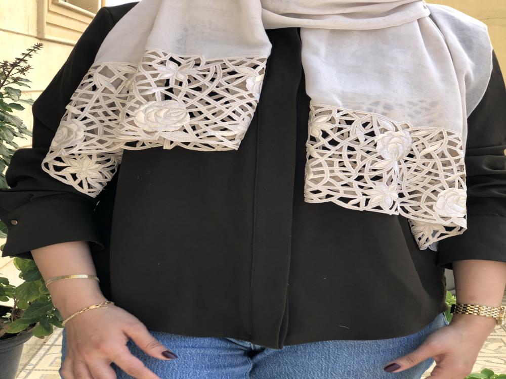 طرحة بوال لون ابيض بتطريز من الطرفين