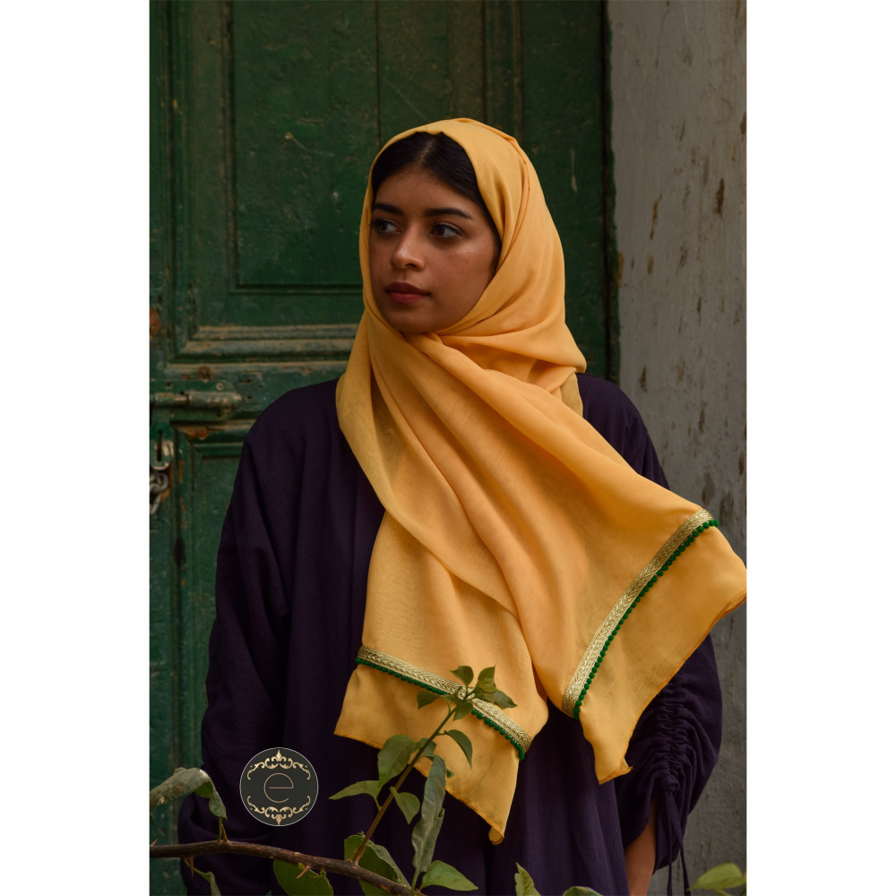 طرحة لنن لون اسود بشريط ذهبي