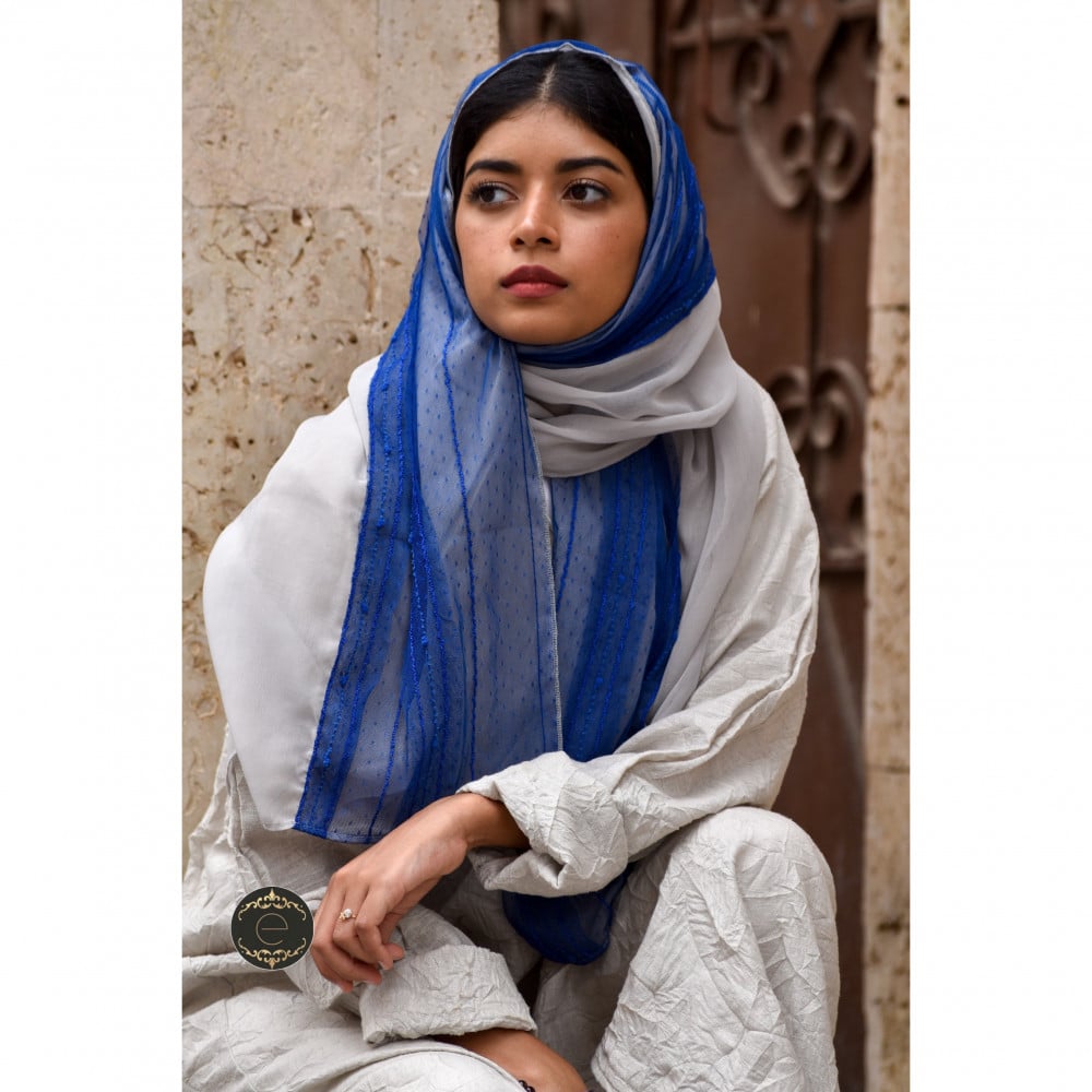 طرحه بوال لون رمادي مع دنتيل ازرق كحلي