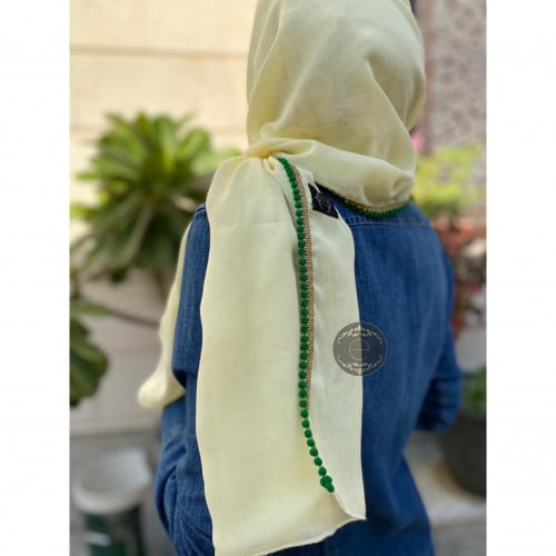 طرحة لنن لون زيتي بتطريز ناعم من الاطراف (