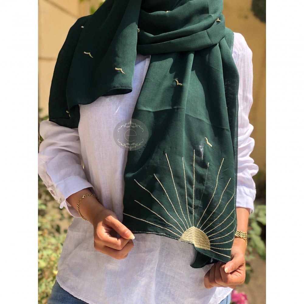 طرحة بوال لون زيتي بتطريز شمس
