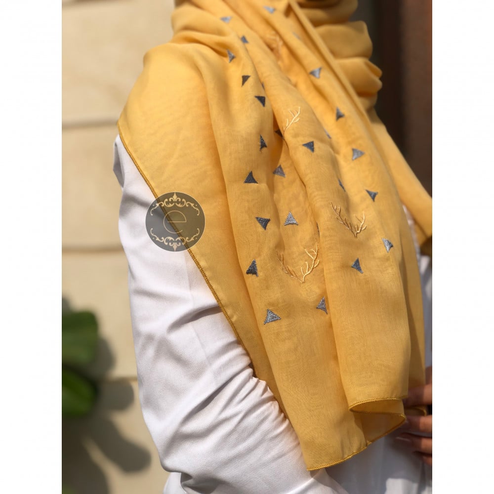 طرحه بوال بتطريز على شكل قرن الغزال لون منجي