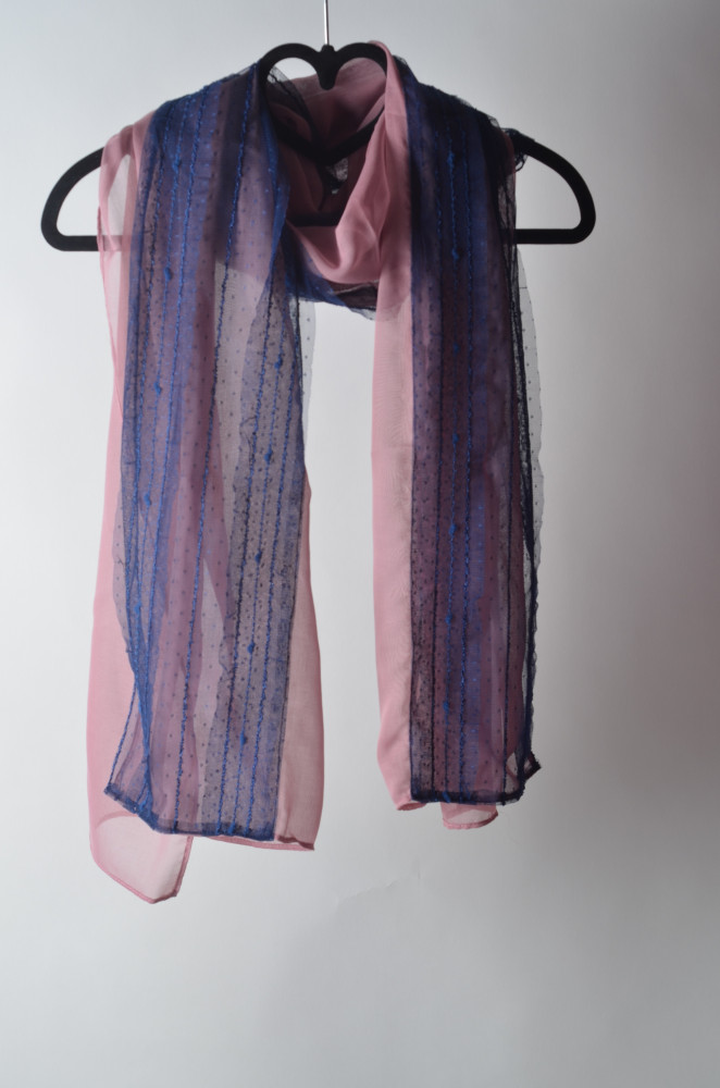 طرحة بوال لون أزرق بتطريز من الطرفين