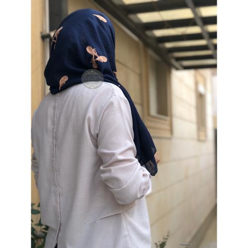 طرحة لنن بتطريز بطول الطرحة لون كحلي