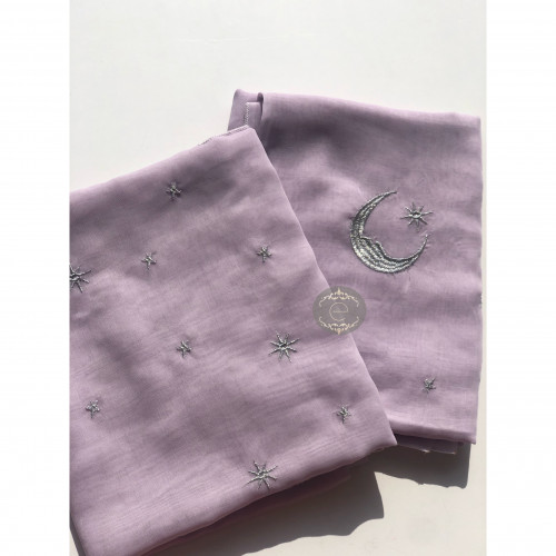 طرحة بوال لون موف فاتح بتطريز على شكل هلال ونجوم
